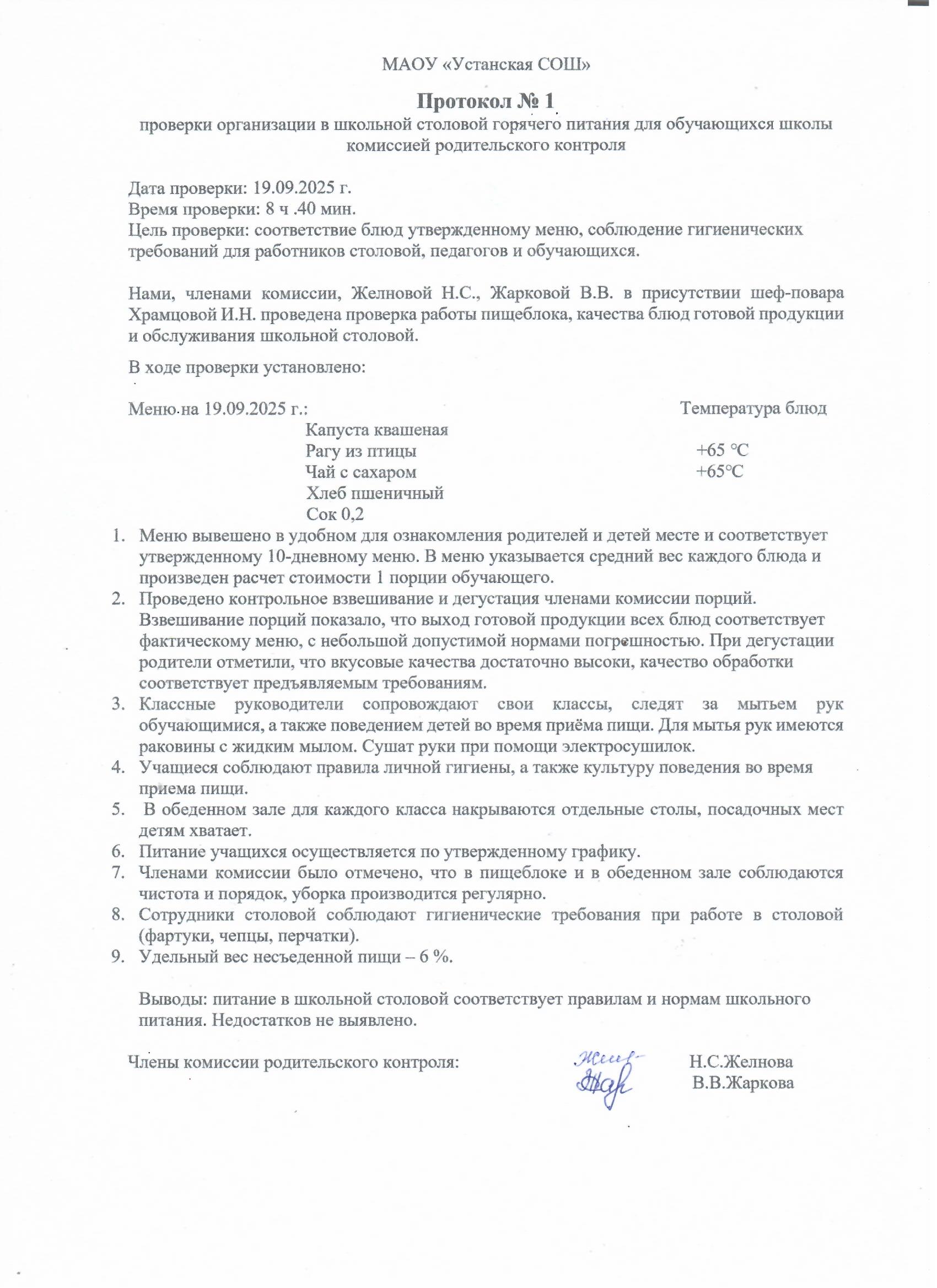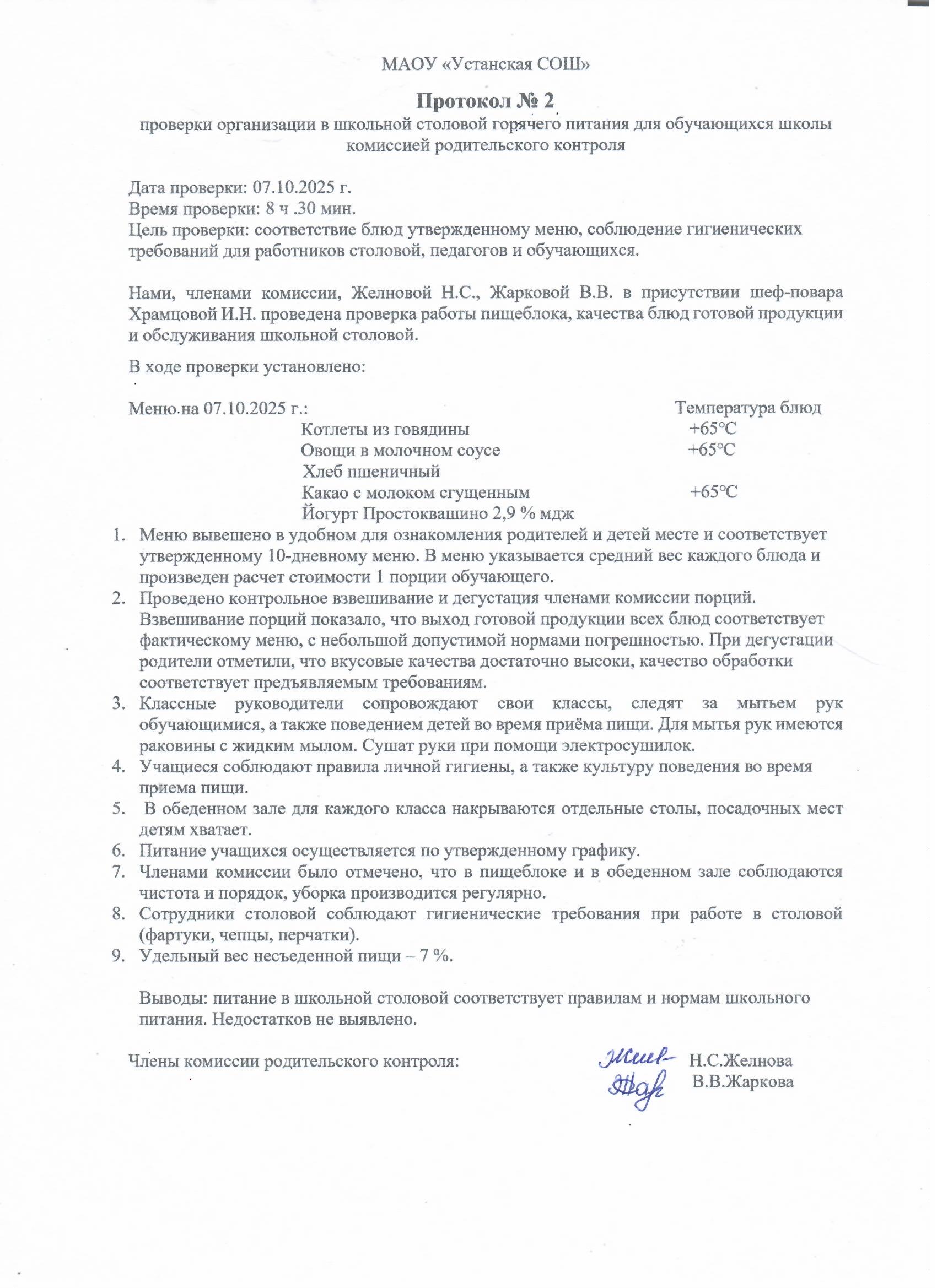 Результаты контроля за качеством питания школьников |
